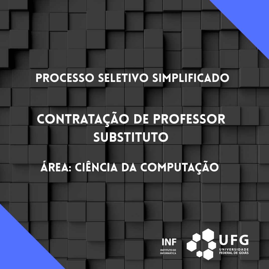 O Instituto de Informática da Universidade Federal de Goiás (INF/UFG) está ofertando 01 vaga para Professor Substituto na área de Ciência da Computação.